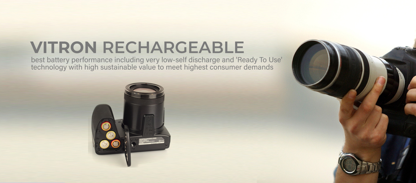 Rechargeable batteries from VITRON are the best power supply for a broad scope of applications. VITRON offers the widest and most consumer oriented NiMH battery assortment on the market. Best battery performance combined with a reliable and innovative technology make VITRON rechargeable batteries the best choice for consumers enabling them to contribute to protect our environment and our future.